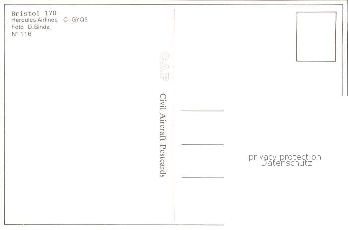 Flugzeuge Zivil Hercules Airlines Bristol 170 C-GYQS postalisch nicht gelaufen Erhaltung siehe scans