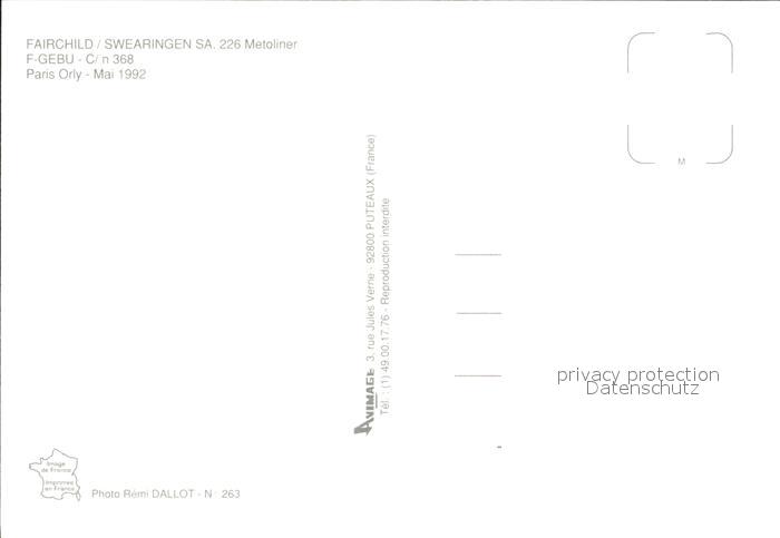 Flugzeuge Zivil Hex Air Fairchild Swearingen SA. 226 Metoliner F-GEBU C/n 368 postalisch nicht gelaufen Erhaltung siehe scans