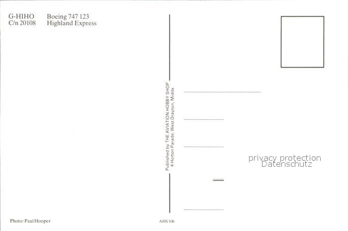 Flugzeuge Zivil Highland Express Boeing 747-123 G-HIHO C/n 20108 postalisch nicht gelaufen Erhaltung siehe scans