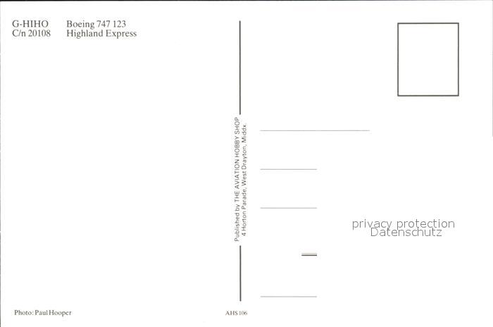 Flugzeuge zivil Highland Express G-HIHO Boeing 747 123 postalisch nicht gelaufen Erhaltung siehe scans