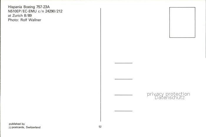 Flugzeuge Zivil Hispania Boeing 757-23A N510EP EC-EMU c/n 24290/212 postalisch nicht gelaufen Erhaltung siehe scans