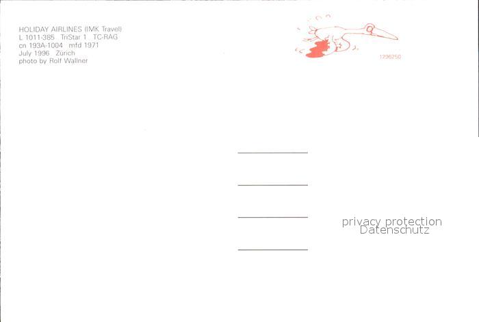 Flugzeuge Zivil Holiday Airlines IMK Travel L 1011-385 Tristar 1 TC-RAG cn 193A-1004 postalisch nicht gelaufen Erhaltung siehe scans