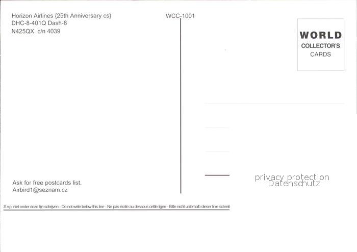 Flugzeuge Zivil Horizon Airlines 25th Anniversary cs DHC-8-401Q Dash 8 N425QX c/n 4039 postalisch nicht gelaufen Erhaltung siehe scans