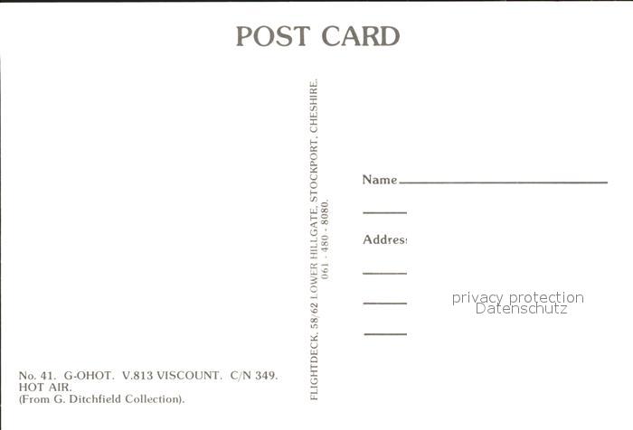 Flugzeuge Zivil Hot Air V813 Viscount G-OHOT c/n 349 postalisch nicht gelaufen