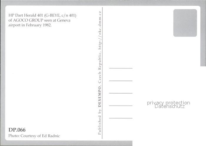Flugzeuge Zivil HP Dart Herald 401 G-BEYE c/n 401 Agoco Group postalisch nicht gelaufen Erhaltung siehe scans