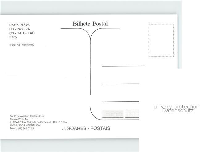 Flugzeuge Zivil HS-748-2A CS-TAU LAR Faro postalisch nicht gelaufen Erhaltung siehe scans