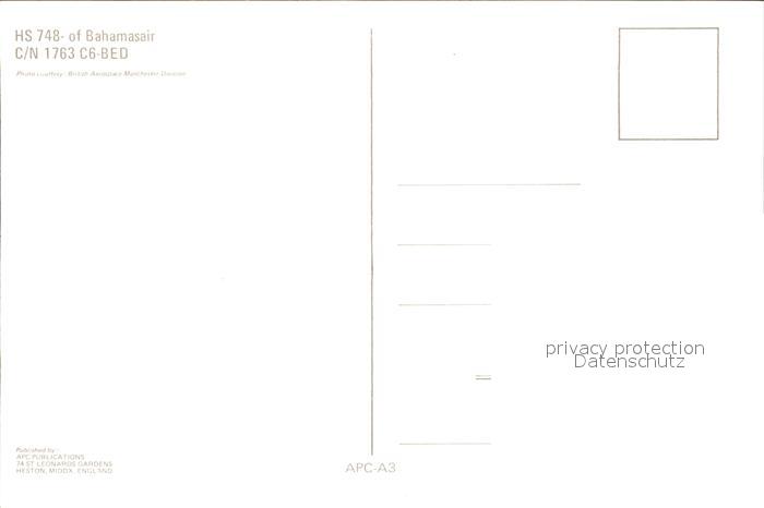 Flugzeuge Zivil HS 748 Bahamasair C/N 1763 C6-BED postalisch nicht gelaufen Erhaltung siehe scans