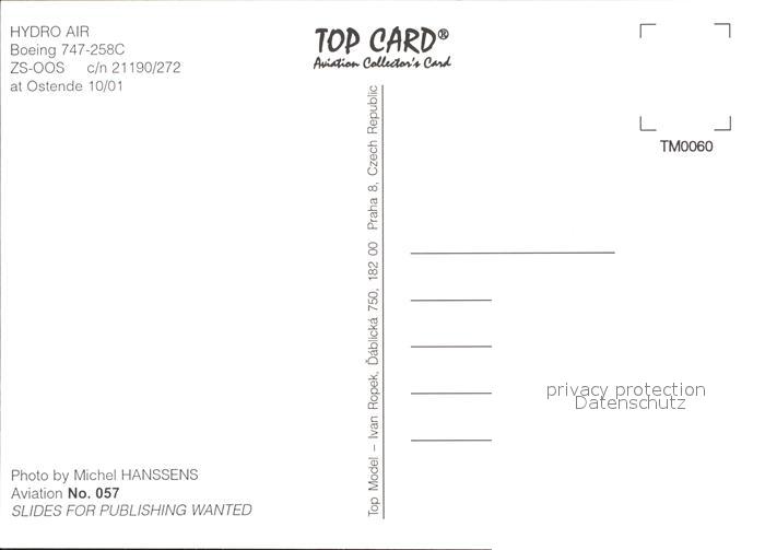 Flugzeuge Zivil Hydro Air Boeing 747-258C ZS-OOS c/n 21190/272 postalisch nicht gelaufen Erhaltung siehe scans