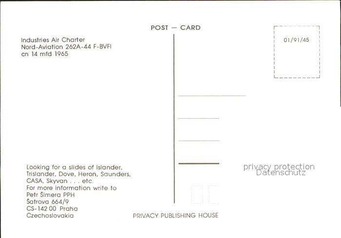 Flugzeuge Zivil IAC Nord-Aviation 262A-44 F-BVFI cn 14 postalisch nicht gelaufen Erhaltung siehe scans