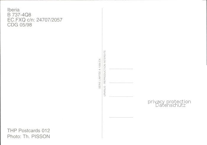 Flugzeuge Zivil Iberia B-737-4Q8 EC-FXQ c/n 24707/2057 postalisch nicht gelaufen Erhaltung siehe scans