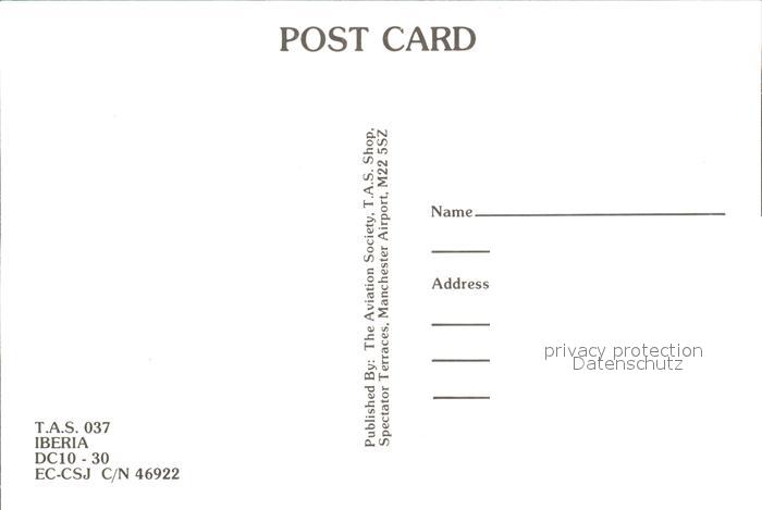 Flugzeuge Zivil Iberia DC10-30 EC-CSJ c/n 46922 postalisch nicht gelaufen Erhaltung siehe scans