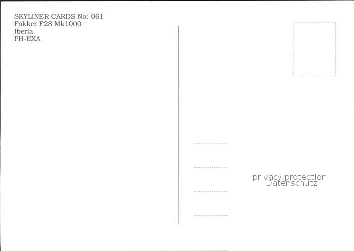 Flugzeuge Zivil Iberia Fokker F28 Mk1000 PH-EXA postalisch nicht gelaufen Erhaltung siehe scans