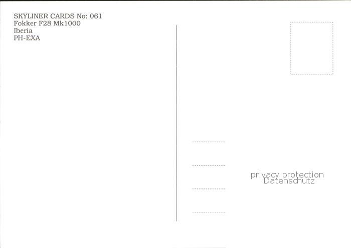 Flugzeuge Zivil Iberia Fokker F28 Mk1000 PH-EXA postalisch nicht gelaufen Erhaltung siehe scans