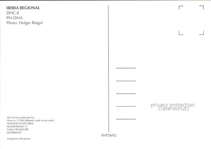 Flugzeuge Zivil Iberia Regional DHC-8 PH-DMP postalisch nicht gelaufen Erhaltung siehe scans