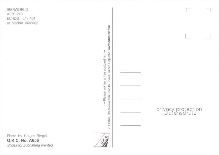 Flugzeuge Zivil IberWorld A330-243 EC-IDB c/n 461 postalisch nicht gelaufen Erhaltung siehe scans