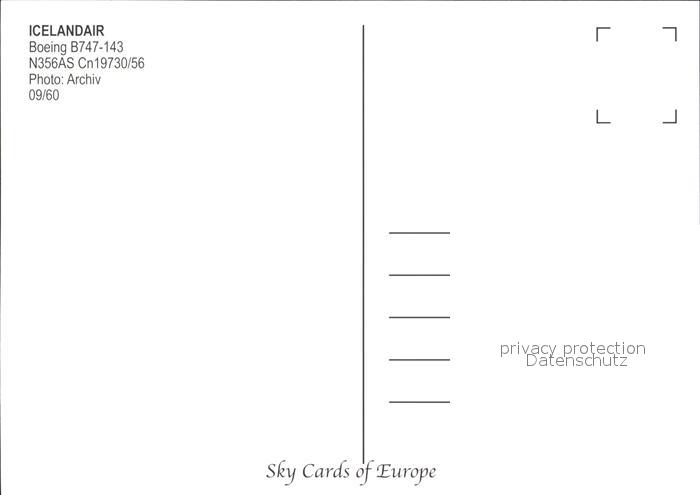 Flugzeuge Zivil Icelandair Boeing 747-43 N356AS Cn 19730/56 postalisch nicht gelaufen Erhaltung siehe scans