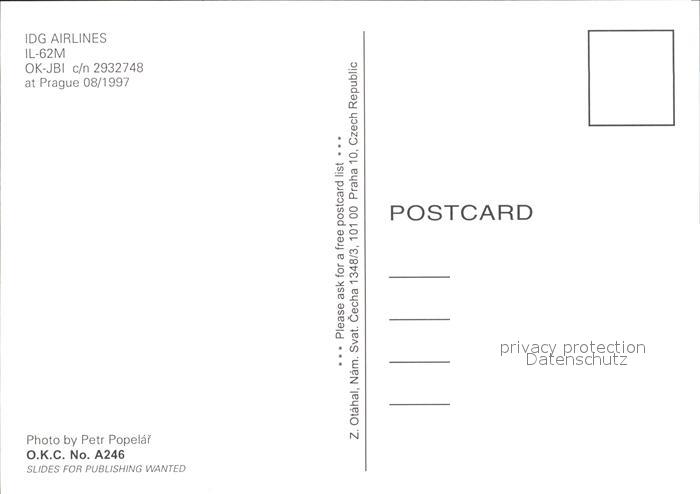 Flugzeuge Zivil IDG Airlines IL-62M OK-JBI Prague postalisch nicht gelaufen Erhaltung siehe scans
