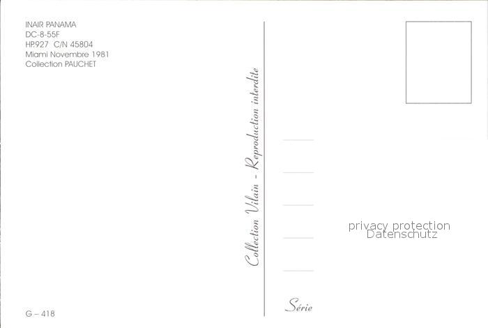 Flugzeuge Zivil Inair Panama DC-8-55F HP-927 c/n 45804 postalisch nicht gelaufen Erhaltung siehe scans