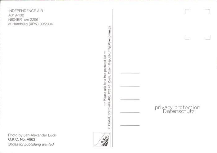 Flugzeuge Zivil Independence Air A319-132 N804BR c/n 2296 postalisch nicht gelaufen Erhaltung siehe scans