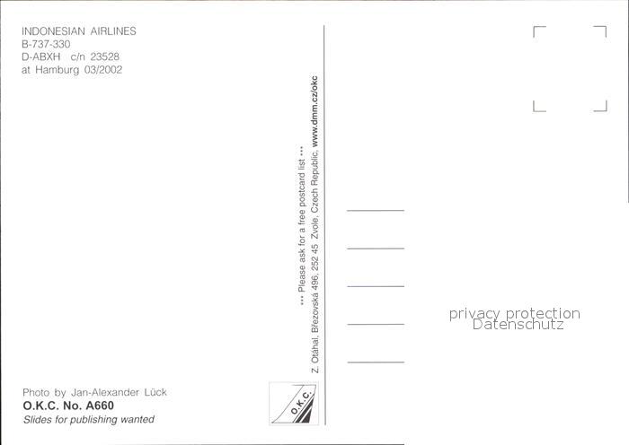 Flugzeuge Zivil Indonesian Airlines B-737-330 D-ABXH c/n 23528 postalisch nicht gelaufen Erhaltung siehe scans
