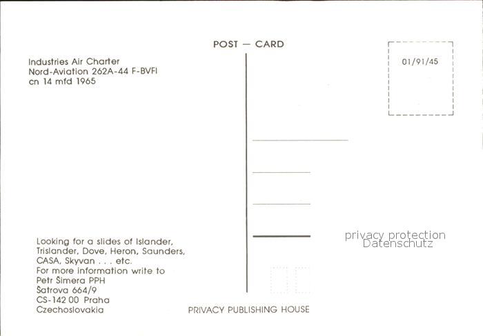 Flugzeuge Zivil Industries Air Charter Nord-Aviation 262A-44 F-BVFI cn 14 mfd 1965 postalisch nicht gelaufen Erhaltung siehe scans