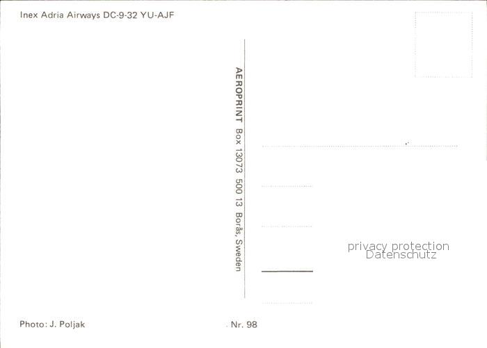 Flugzeuge Zivil Inex Adria Airways DC-9-32 YU-AJF postalisch nicht gelaufen Erhaltung siehe scans