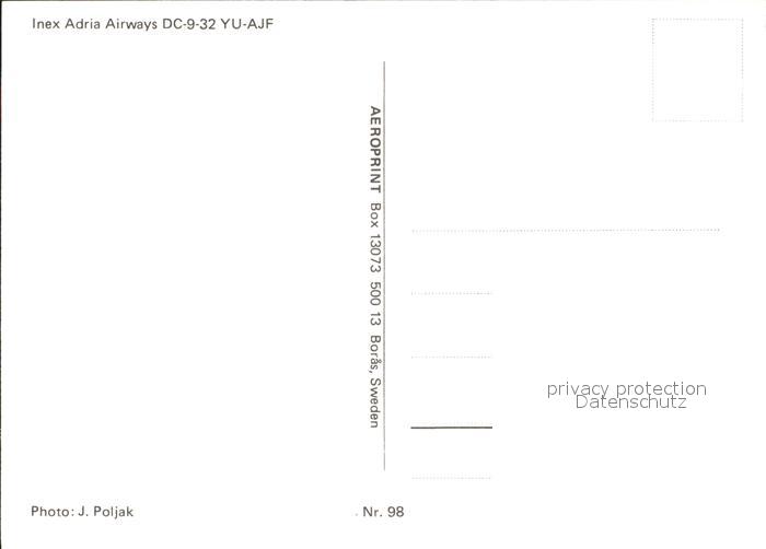 Flugzeuge Zivil Inex Adria Airways DC-9-32 YU-AJF postalisch nicht gelaufen Erhaltung siehe scans