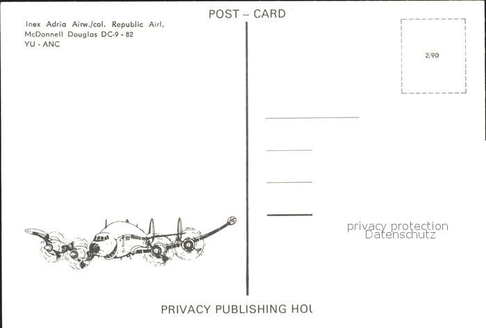 Flugzeuge Zivil Inex Adria Airways McDonnell Douglas DC-9-82 YU-ANC postalisch nicht gelaufen Erhaltung siehe scans