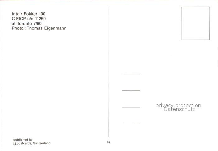 Flugzeuge Zivil Intair Fokker 100 C-FICP c/n 11259 postalisch nicht gelaufen Erhaltung siehe scans