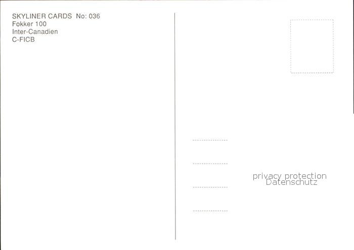 Flugzeuge Zivil Inter-Canadian Fokker 100 C-FICB postalisch nicht gelaufen Erhaltung siehe scans