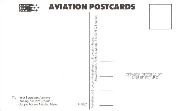 Flugzeuge Zivil Inter European Airways Boeing 737-2L9 OY-APP postalisch nicht gelaufen