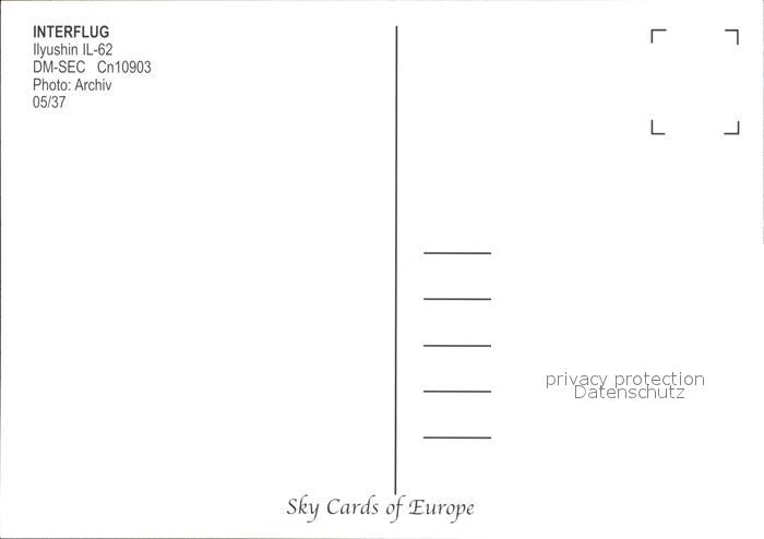 Flugzeuge Zivil Interflug Ilyshin IL-62 DM-SEC Cn 10903 postalisch nicht gelaufen Erhaltung siehe scans
