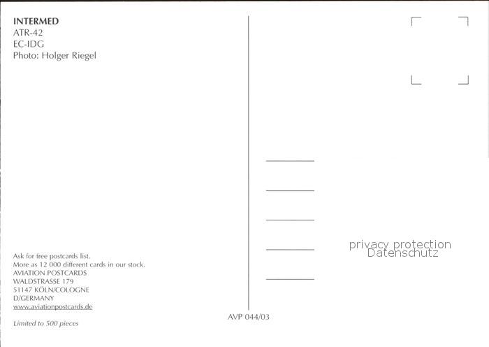 Flugzeuge Zivil Intermed ATR-42 EC-IDG postalisch nicht gelaufen Erhaltung siehe scans