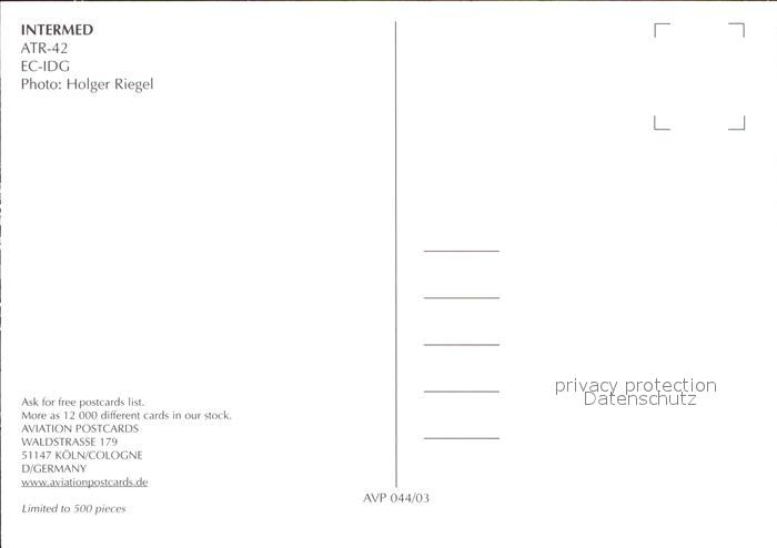 Flugzeuge Zivil Intermed Transports Publics de Catalunya ATR-42 EC-IDG postalisch nicht gelaufen Erhaltung siehe scans