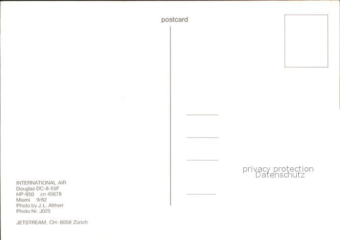 Flugzeuge Zivil International Air Douglas DC-8-55F HP-950 cn 45678 postalisch nicht gelaufen Erhaltung siehe scans