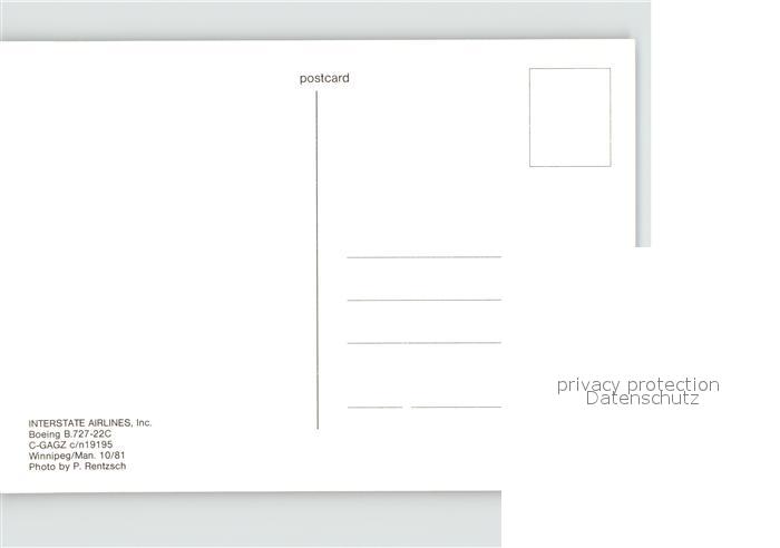 Flugzeuge Zivil Interstate Airlines Boeing B.727-22C C-GAGZ c/n 19195 postalisch nicht gelaufen Erhaltung siehe scans