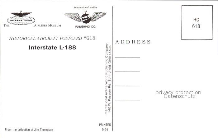 Flugzeuge Zivil Interstate L-188 N864U postalisch nicht gelaufen Erhaltung siehe scans