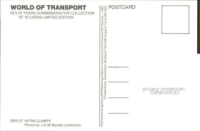 Flugzeuge Zivil Intra Jersey DC3 G-AMPY postalisch nicht gelaufen Erhaltung siehe scans