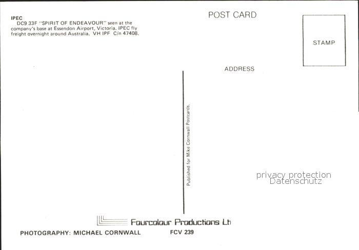 Flugzeuge Zivil IPEC DC9 33F VH IPF c/n 47408 postalisch nicht gelaufen Erhaltung siehe scans