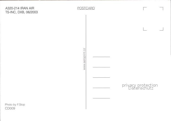 Flugzeuge Zivil Iran Air A320-214 TS-INC postalisch nicht gelaufen Erhaltung siehe scans