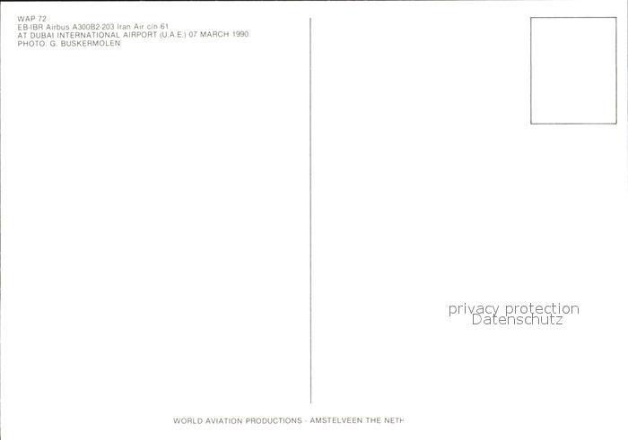 Flugzeuge Zivil Iran Air Airbus A300B2-203 EB-IBR c/n 61 postalisch nicht gelaufen Erhaltung siehe scans