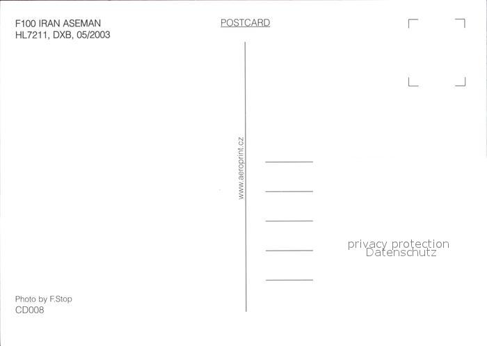 Flugzeuge Zivil Iran Aseman F100 HL-7211 postalisch nicht gelaufen Erhaltung siehe scans