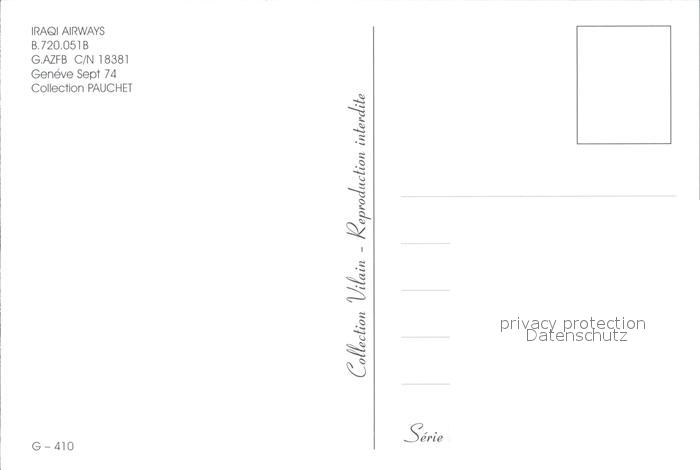 Flugzeuge Zivil Iraqi Airways B-720-051B G-AZFB C/N 18381 postalisch nicht gelaufen Erhaltung siehe scans