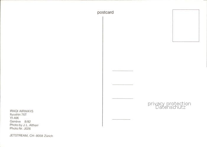 Flugzeuge Zivil Iraqi Airways Ilyushin 76T YI-AIK postalisch nicht gelaufen Erhaltung siehe scans