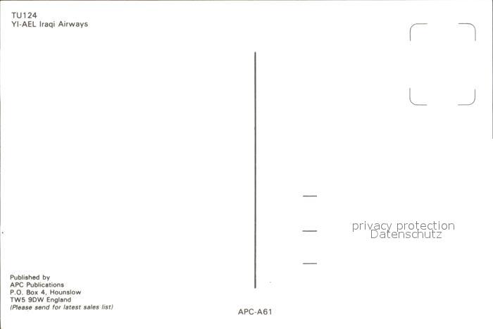Flugzeuge Zivil Iraqi Airways TU124 YI-AEL postalisch nicht gelaufen Erhaltung siehe scans