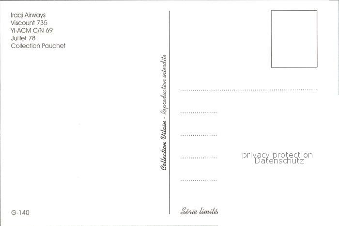 72281459 Flugzeuge Zivil Iraqi Airways Viscount 735 YI-ACM C/N 69 KatCode 22120000001300