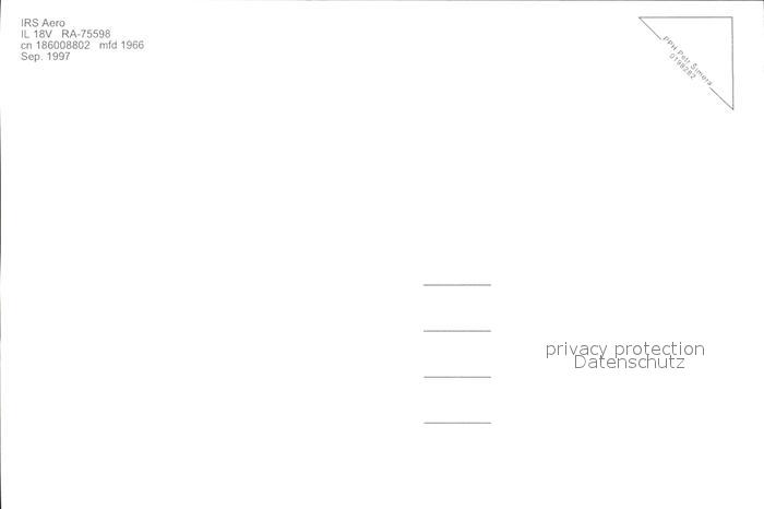 Flugzeuge Zivil IRS Aero IL 18V RA-75598 cn 186008802 postalisch nicht gelaufen Erhaltung siehe scans