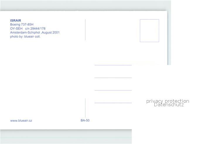 Flugzeuge Zivil Israir Boeing 737-85H OY-SEH c/n 29444/178 postalisch nicht gelaufen Erhaltung siehe scans