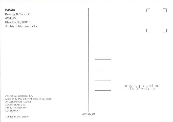Flugzeuge Zivil IsrAir Boeing B757-300 4X-EBN postalisch nicht gelaufen Erhaltung siehe scans