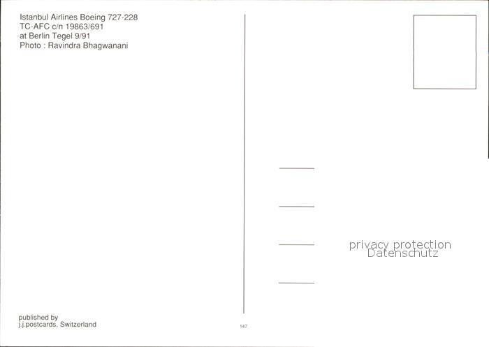 Flugzeuge Zivil Istanbul Airlines Boeing 727-228 TC-AFC c/n 19863/691 postalisch nicht gelaufen Erhaltung siehe scans